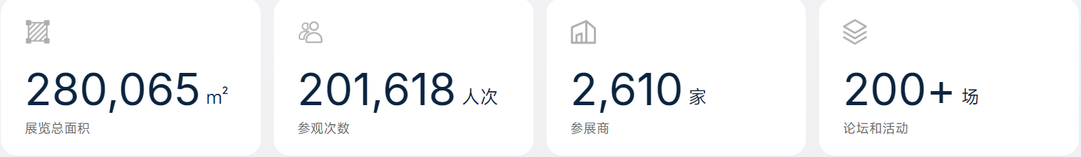 展会规模:8万㎡展示面积,600+展商,200,000+专业观众人次;同期9大主题,共享30万平方米展示面积。